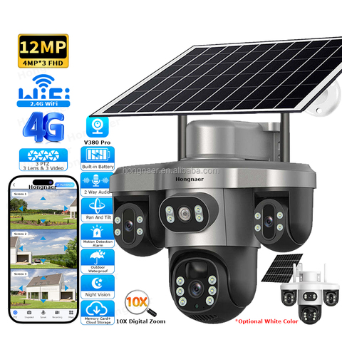 Hongnaer 12MP 4GソーラーワイヤレスビデオCCTV IPカメラV380 Pro屋外3レンズ10Xデジタルズーム4G SIMカードソーラー防犯カメラ